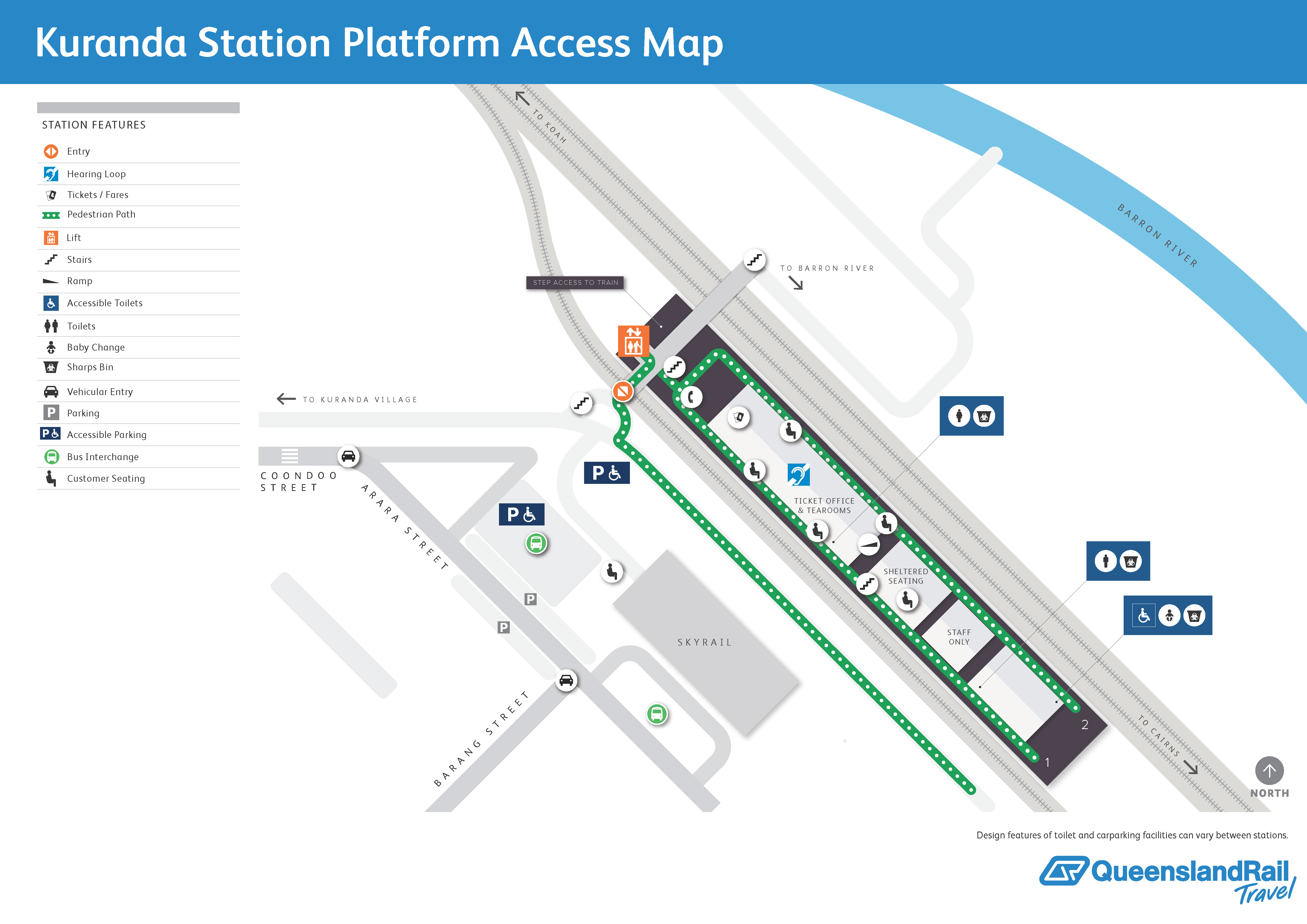 Upon arrival at Kuranda railway station, you will find several facilities for your convenience, including:
