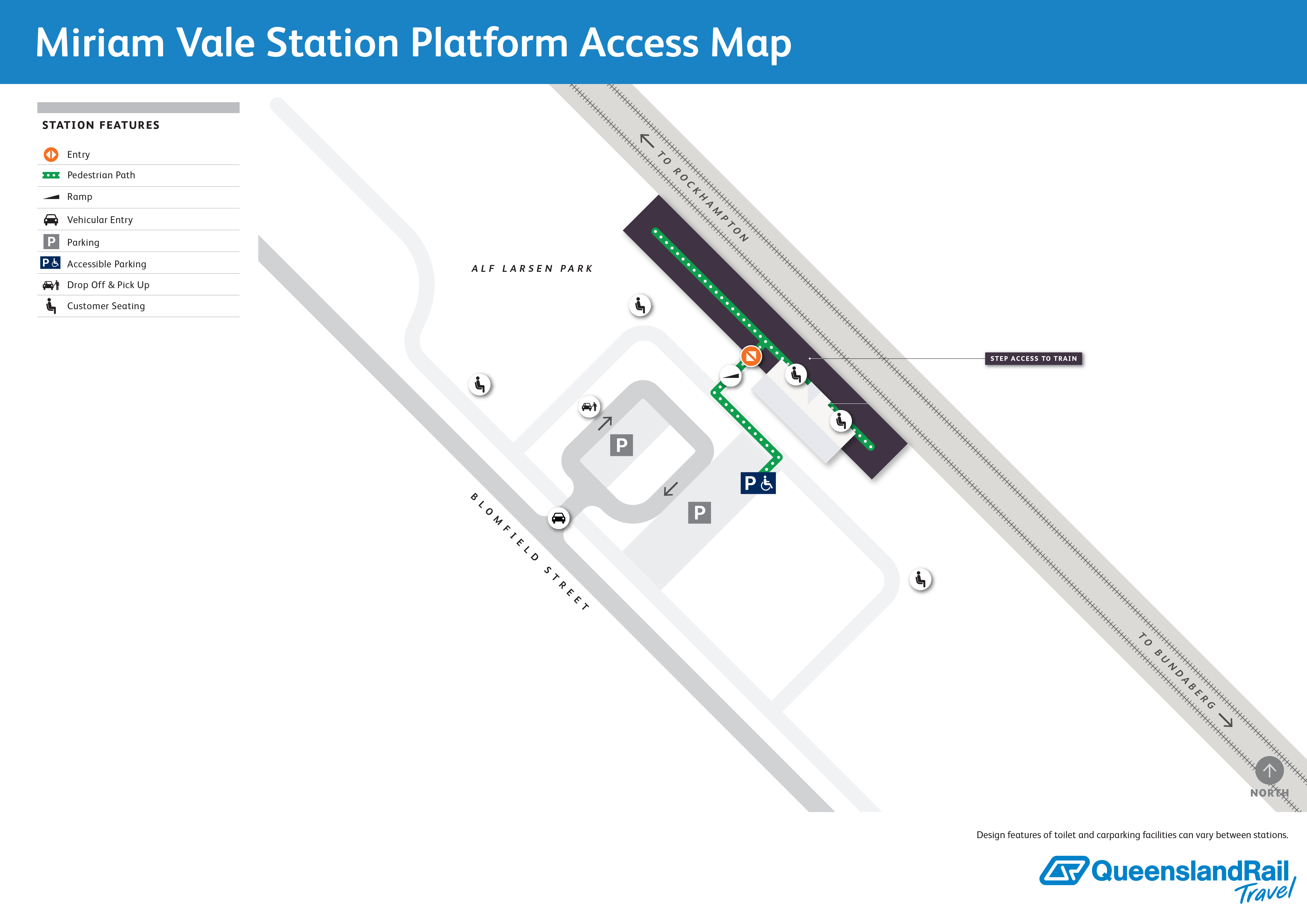 Please be at the station ready to board 15 minutes before train departure time. As this station is unattended there is no luggage check-in service before boarding. The onboard team will assist when the train arrives at the station.